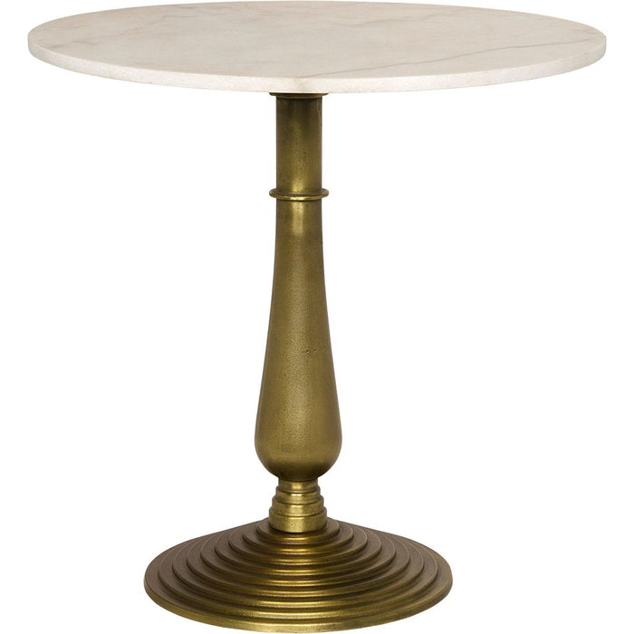 Two elemental materials meet in this quietly dramatic accent table. The base is formed of cast iron with a soft gold finish, and the top is a slab of marble. No two pieces of stone, and therefore no two tables, will be identical.