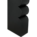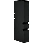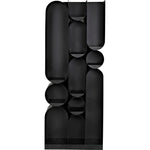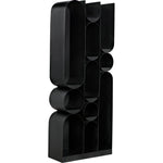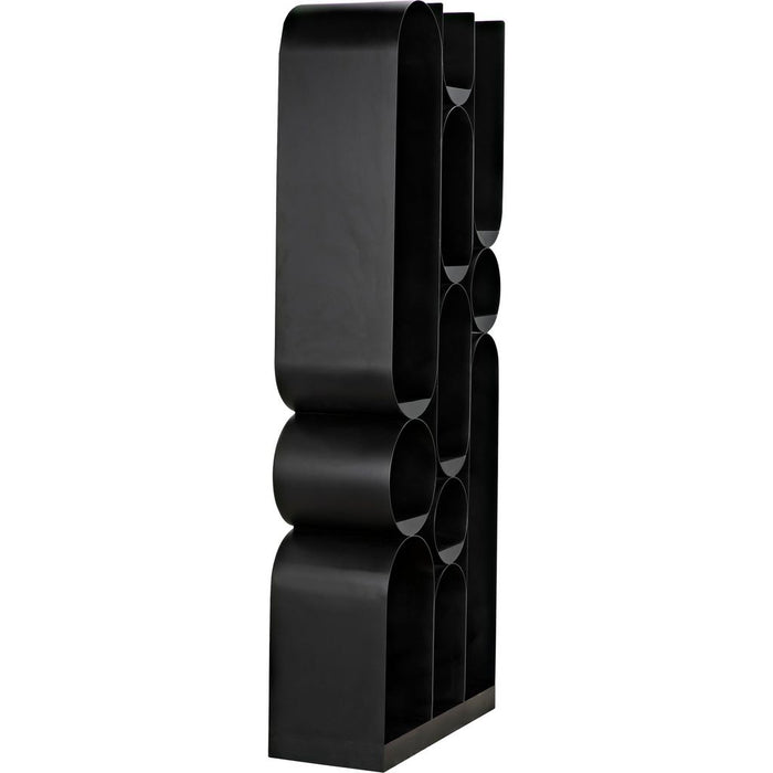 Repeating racetrack and circular shapes reminiscent of Seventies supergraphics make this industrial Steel Bookcase a sculptural and graphic storage standout. Modest width and depth make for ease of placement. Matte Black finish.