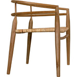 A softly curved teak chair accented with expertly hand-woven natural rattan, this classically elegant chair is minimally finished to celebrate the tone and luster of its materials. Comfortable and timeless, it effortlessly elevates any decor.