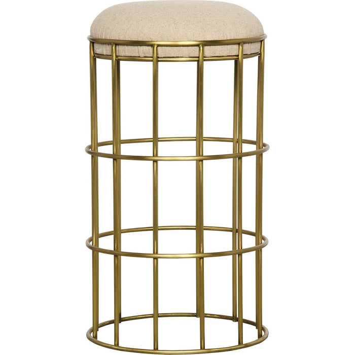 A glamorous look with art deco inspirations, the Ryley stool has a cage like metal base with a burnished gold finish, and an upholstered linen seat.