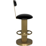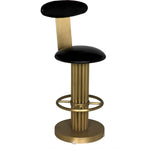 Available in counter or bar heights, the Sedes stools stun. Their art-deco inspiration is obvious, but the quality of the construction and the cleverness of their design deserve additional scrutiny. The bases are industrial strength steel, with an antiqued brass finish. The seat and back are upholstered in rich black leather. And, like everyone's favorite stools. They swivel!