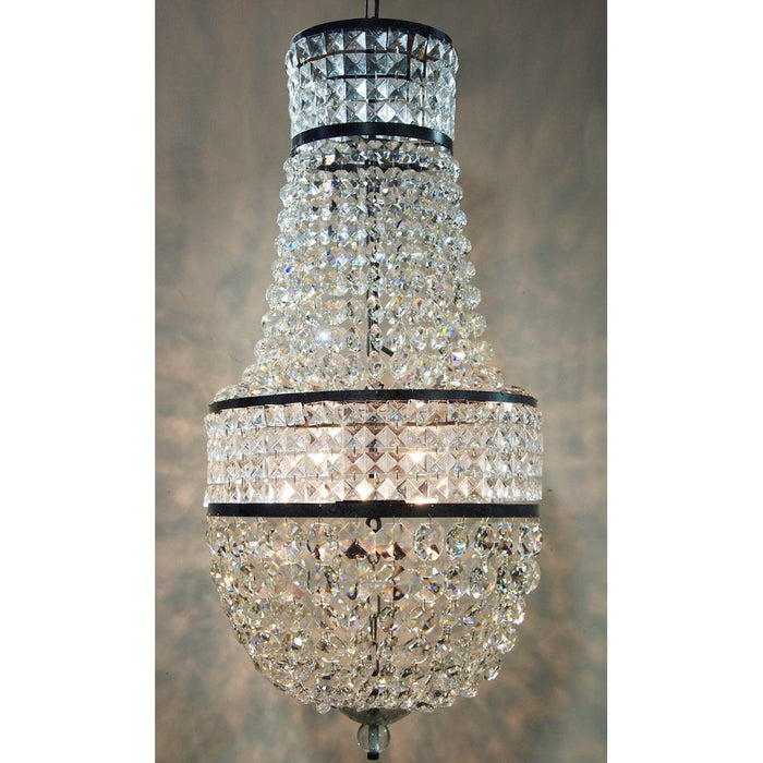 Art Deco inspired but still very, very contemporary, the handcrafted Anna chandelier features cascading glass crystals supported by matte black metal. When lit, it is dazzling in its beauty.