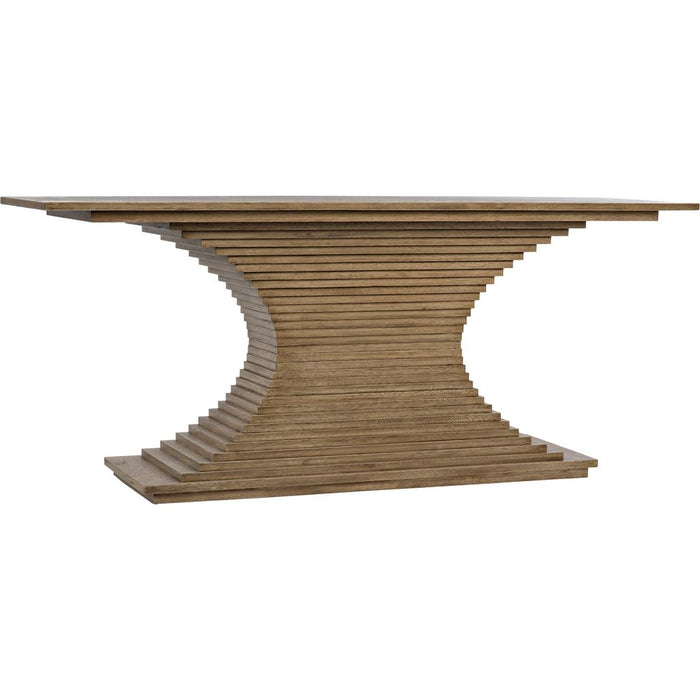 Walnut is expertly hand-carved into decorative ridges, creating curves out of straight lines, and turning extensive adornment into simplicity. A hand-applied bleached finish enhances the piece perfectly.
