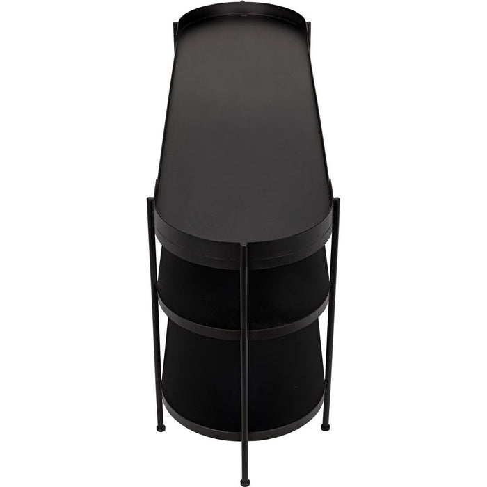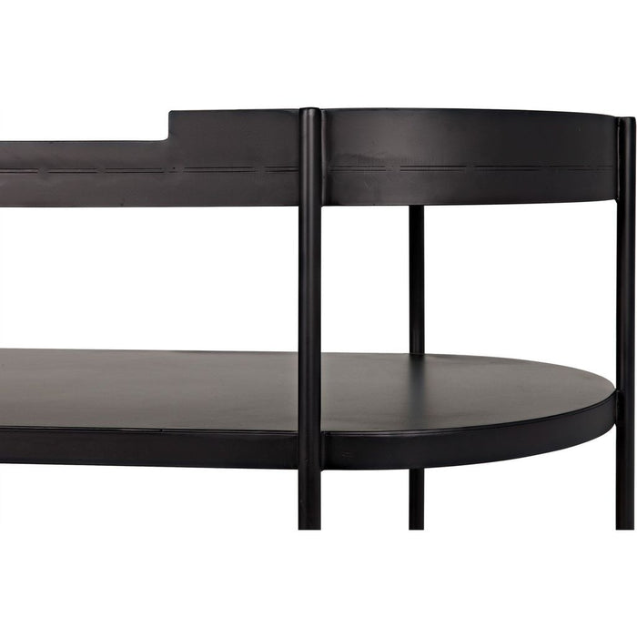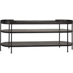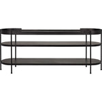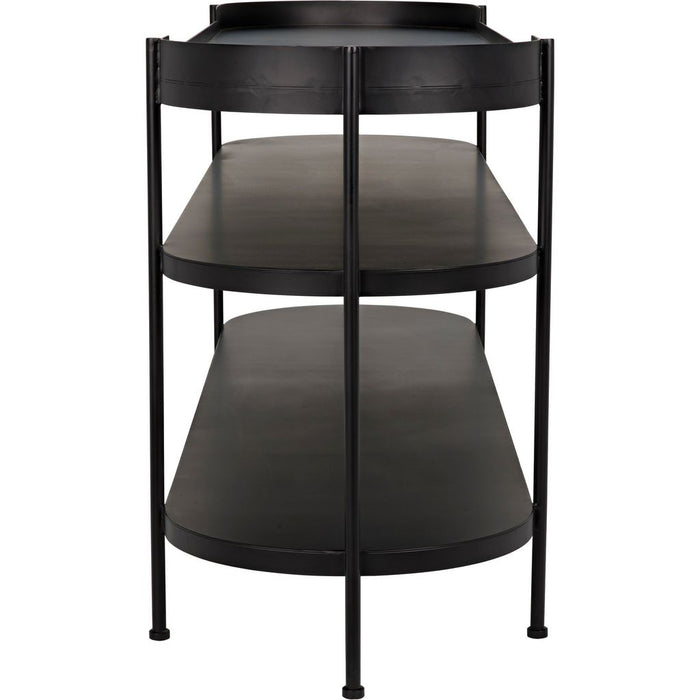 Mid-century modern lines in minimally finish metal, contemporary curves, and three shelves. The Cassio console from Noir has it all. Hand-crafted and hand finished, they are quite simply exceptional.