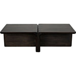 Display as one simple rectangular coffee table, or sperate the two pieces to customize the piece to perfectly fit your needs. This striking piece has been handcrafted of walnut, and is finished in a rich ebony.