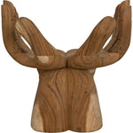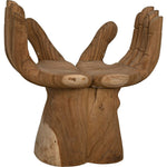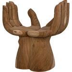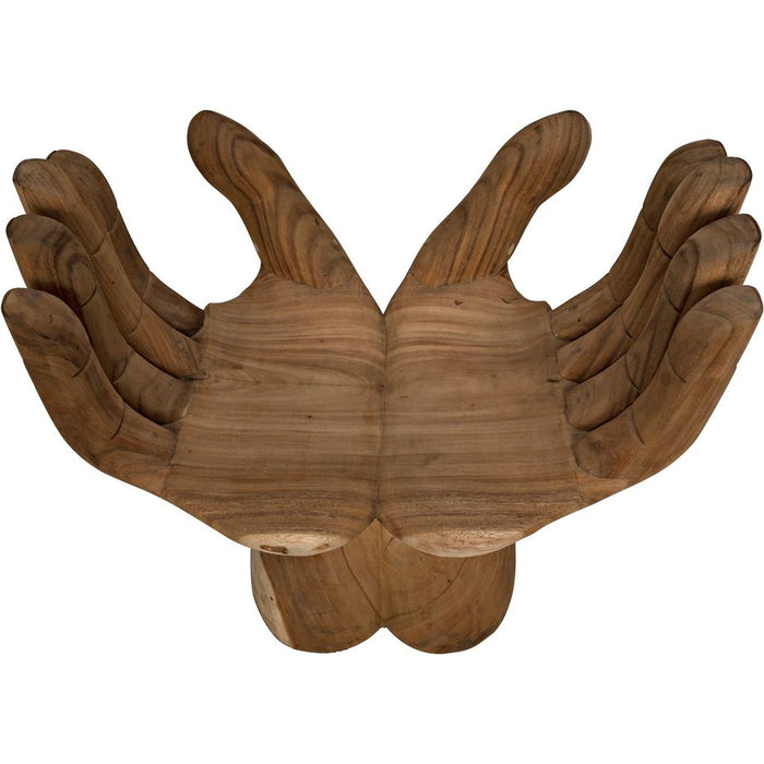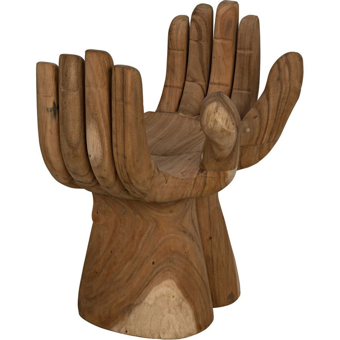 Intriguing and ethereal, bold yet whimsical, this dramatic chair cradles you in two hand-carved teak hands. Each piece is created lovingly by artisans who embrace the idiosyncrasies of the hardwood to create true works of art, ensuring that no two will be identical.