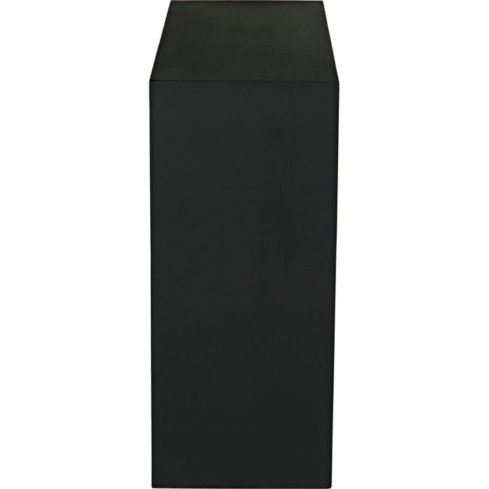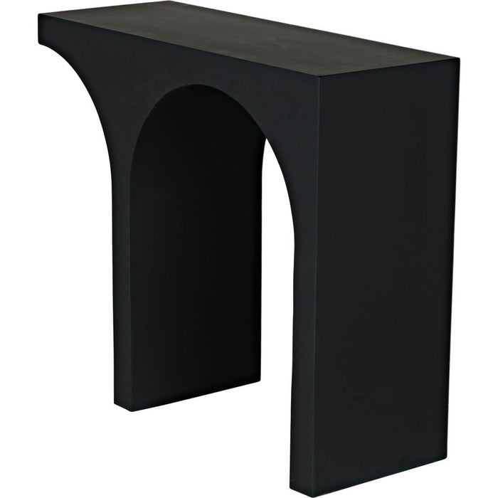 Contemporary, edgy, and quite simply exceptional, this console table is handcrafted of minimally finished industry steel to emphasize its industrial inspirations, it features a matte black finish.