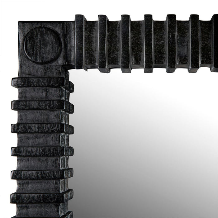 The Rift Mirror is a statement of contemporary elegance, crafted from Mindi and Mirror, finished in a captivating Charcoal Black. With dimensions of 26W X 2D X 36H, this mirror not only adds depth to your space but also serves as a striking focal point.