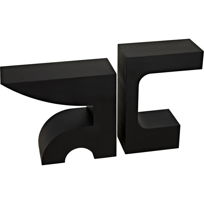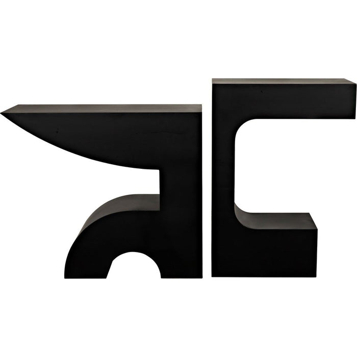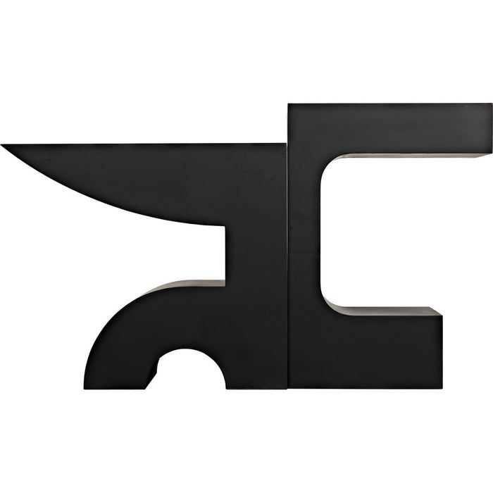The two pieces of the Shiba console can be displayed in multiple combinations allowing it to be customized to fit any interior. Artisan crafted of metal, and minimally finished to celebrate the raw material.