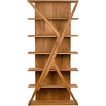 Strikingly carved of naturally finished teak, this unique bookshelf from Noir features and exuberant “X" embellishment that creates a cage-like effect and results in a truly next level design.